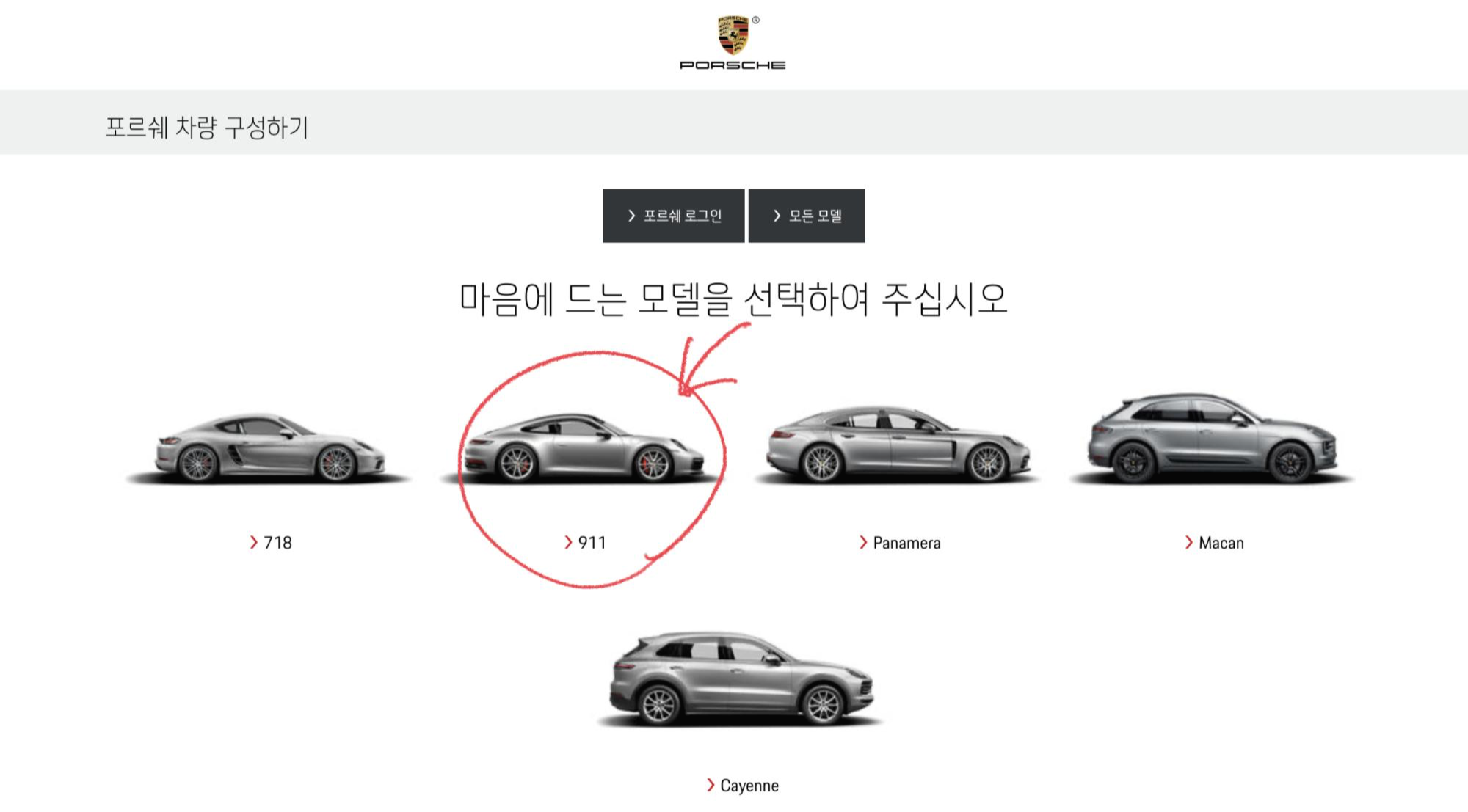 마음에 드는 모델은 역시 911 입니다. 미드쉽 엔진의 718도 훌륭한 스포츠카지만, 718은 영원히 911의 동생이기에, 꿈꿔왔던 911로 한 방에 가보기로 합니다.