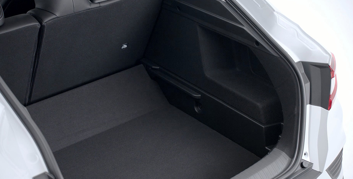 쿠페형 SUV을 타보신 분들은 아시겠지만, 짐을 '쌓아서' 적재하는 것은 불가능합니다. 그래서 보통 세단과 다를바 없거나 더 작은 트렁크를 얻게 됩니다. XM3의 경우는 트렁크 바닥 아래 공간을 별도 수납공간으로 분리해서 사용하거나 상황에 따라 아래 사진처럼 바닥을 아래로 내려서 큰 하나의 공간으로 사용할 수 있도록 만들어놨습니다.