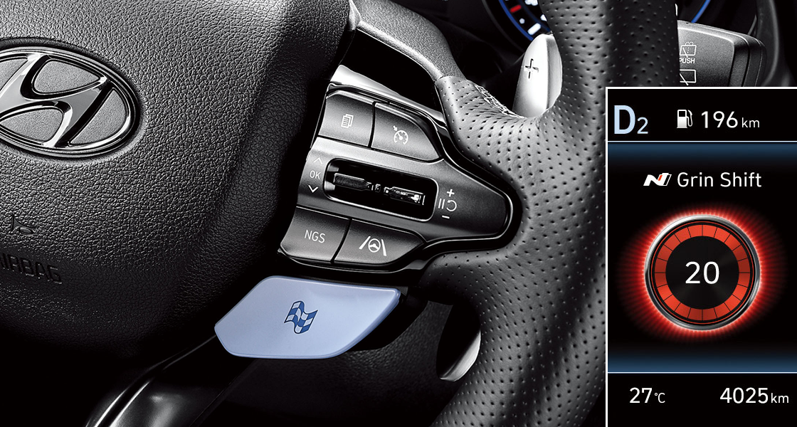 N Grin Shift의 'Grin'은 활짝 웃는다는 의미인데, 이 모드가 활성화되면 운전자로 하여금 입가에 미소를 짓게 만든다는 의미라고 합니다. NGS 버튼을 눌러 모드 사용 시 20초간 엔진과 변속기의 최대 성능을 활용할 수 있게 한다는데, 정확히 포르쉐 차량들에 스포츠 크로노 패키지 선택 시 사용 가능한 스포츠 리스폰스 버튼의 기능과 동일합니다. 물론 큰 차이점이 하나 있는데, 포르쉐에서는 기능을 제한 없이 반복 사용할 수 있는 반면, 벨로스터에서는 20초 사용 후 3분간 재사용이 안된다고 합니다. (하지만 가격으로 모든 것이 용서가 되는..)