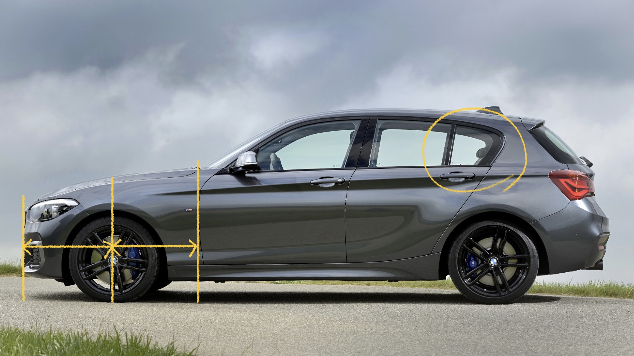 먼저 1시리즈인데, 현재 판매중인 F40(5도어 해치) 1시리즈는 3세대 모델에 해당합니다. E87(5도어 해치)과 F20(5도어 해치)은 본고장인 유럽에서는 가장 흔하게 길에서 만나볼 수 있는 해치백이면서 다른 브랜드에서는 찾아볼 수 없는 후륜구동 레이아웃을 채택했다는 점이 굉장한 차별점이었습니다. 그러다보니, 해치백이면서도 차량 전체 길이 대비 본넷이 굉장히 길게 뻗어있고, 앞바퀴가 앞쪽으로 치우친, 전형적인 후륜구동 승용차의 비율을 하고 있죠.