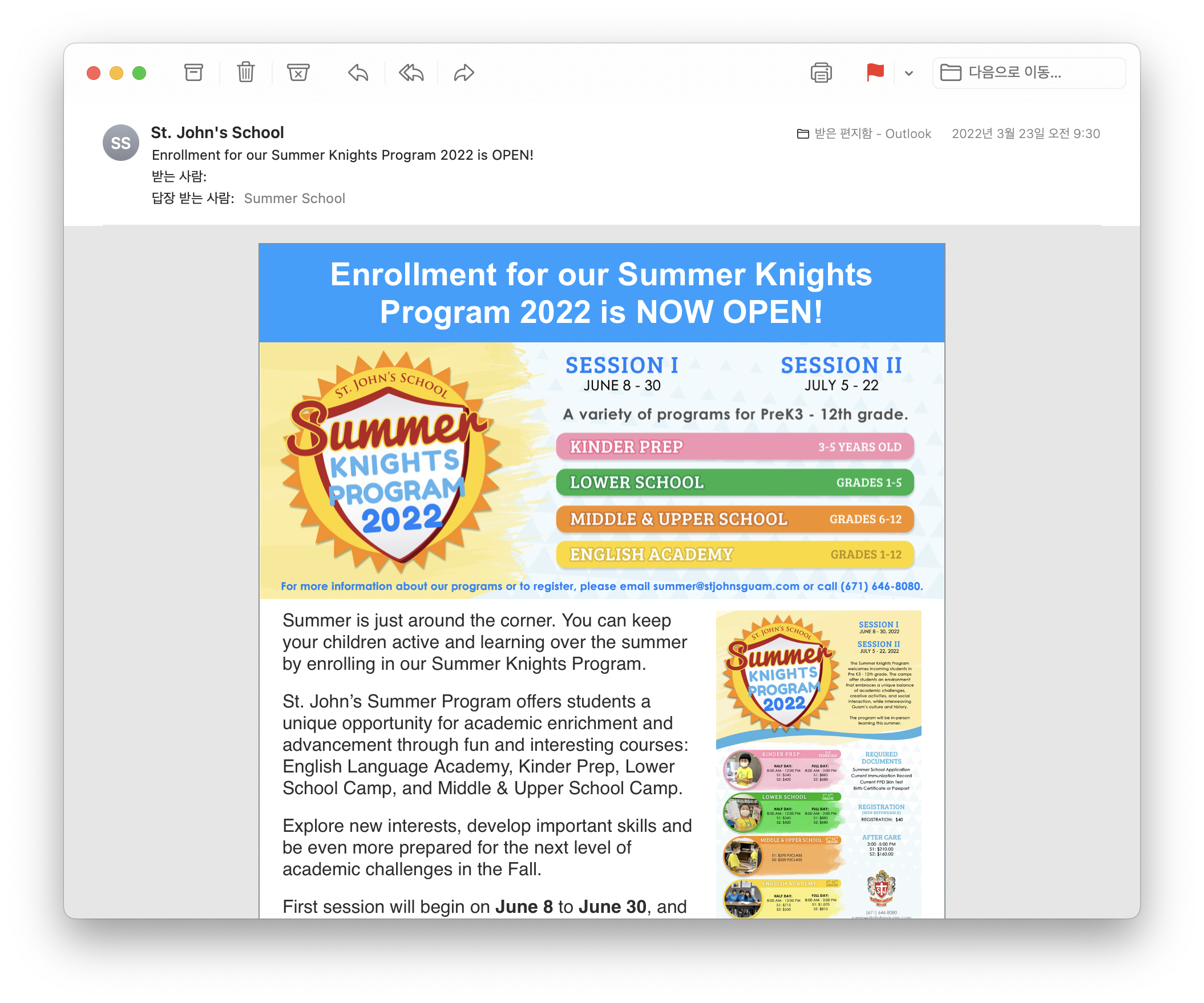 하지만 상반기 내내 코로나가 끝나가는 분위기에 따라 해외여행 수요가 폭증하면서 현지 집과 차량 렌트비, 그리고 우크라이나 전쟁이 지속되며 환율까지 치솟으면서 '이 시점에 괌에서 한 달을 지내는게 맞나?' 라는 생각이 계속 들었고, 고민 끝에 결국 5월 중순에 완도-제주도 왕복 배편 예매와 숙소 예약을 마쳤습니다. (아이들 방학하는 시점에서 다시 체크해보니 제주도 가는 비행기 뿐 아니라 차를 싣고 가려는 배편도 없어서 난리더군요..) 제주도 예약을 해놓고서도 마음 한 구석에서는 아이들 영어 핑계로 괌을 포기하기가 너무 어려웠는데, 학교에서 등록금 내라는 메일을 받는 순간 마음 정리가 되더군요. 꼭 돈 때문만이 아니라, 혹시라도 아이들이 처음 겪는 환경에 적응을 못하면 돈+시간 날리고 추가로 한 달 동안 스트레스만 겪을 수도 있겠다는 생각이 들었습니다.