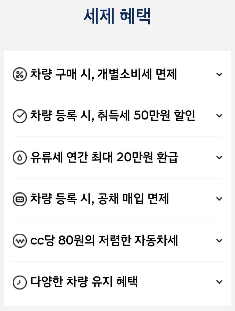 결론부터 얘기하자면, '경차' 하면 뭔가 굉장한 혜택이 많이 있을 것으로 여겨지지만, 막상 정리를 해보니 제 기준에서는 딱히 그렇게 느껴지지는 않았습니다. 일단 경차 관련 세제 혜택 항목들은 캐스퍼 홈페이지에 정리가 한 방에 잘 되어있었습니다.