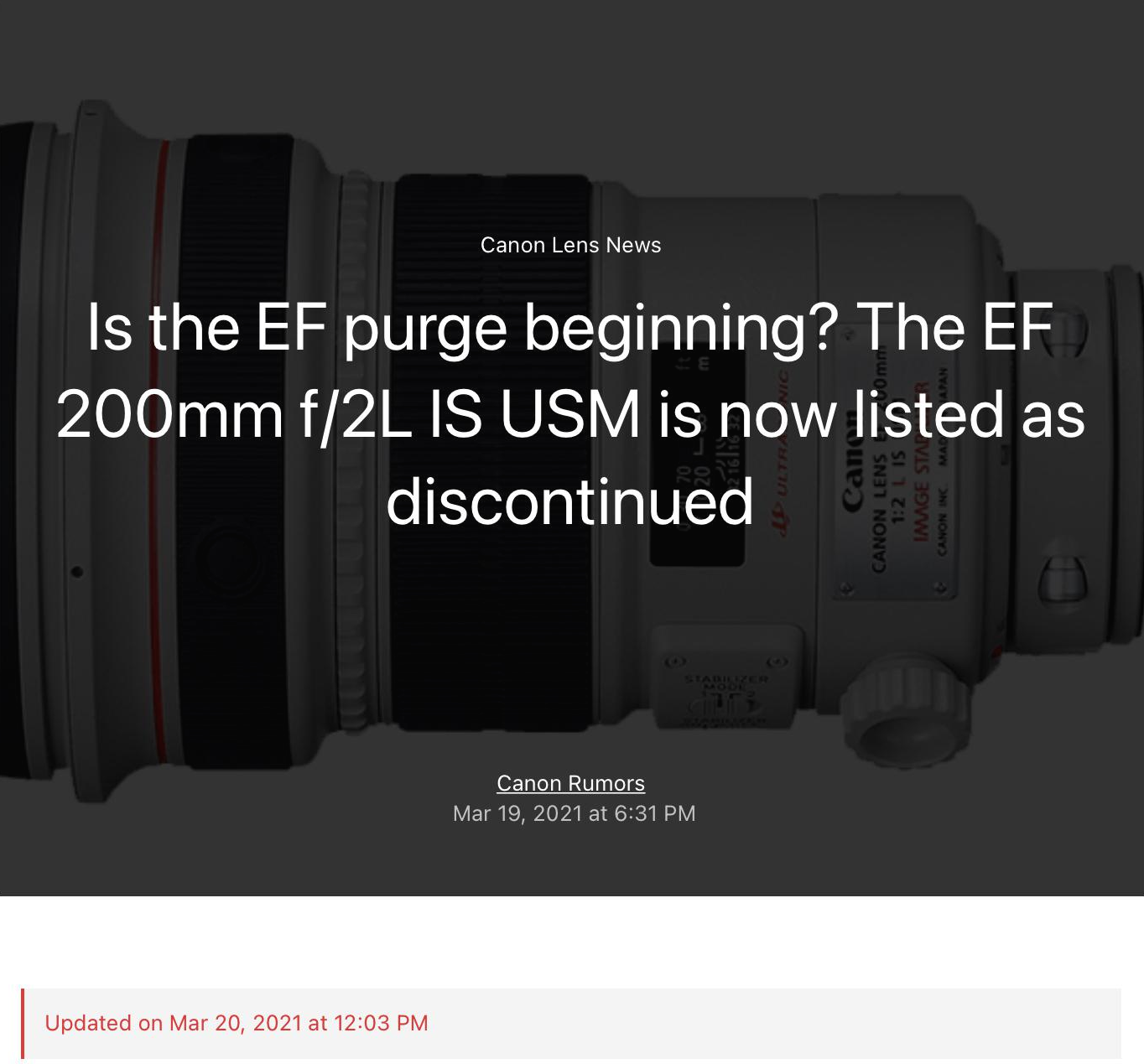 그 이후로 한 달 동안 그냥 줄줄이 단종 러쉬네요! 하긴, 캐논도 이제 2018년 EOR R 출시와 함께 풀프레임 미러리스의 시대를 (한 발 늦었지만) 본격적으로 열었고, 카메라 시장은 계속해서 쪼그라드는 와중에 기존 고급 유저들을 새로운 시스템으로 강제로(!)라도 유입시키려면 '이제 구 시스템은 끝났다' 라는 강력한 메세지를 줄 필요가 있겠죠..